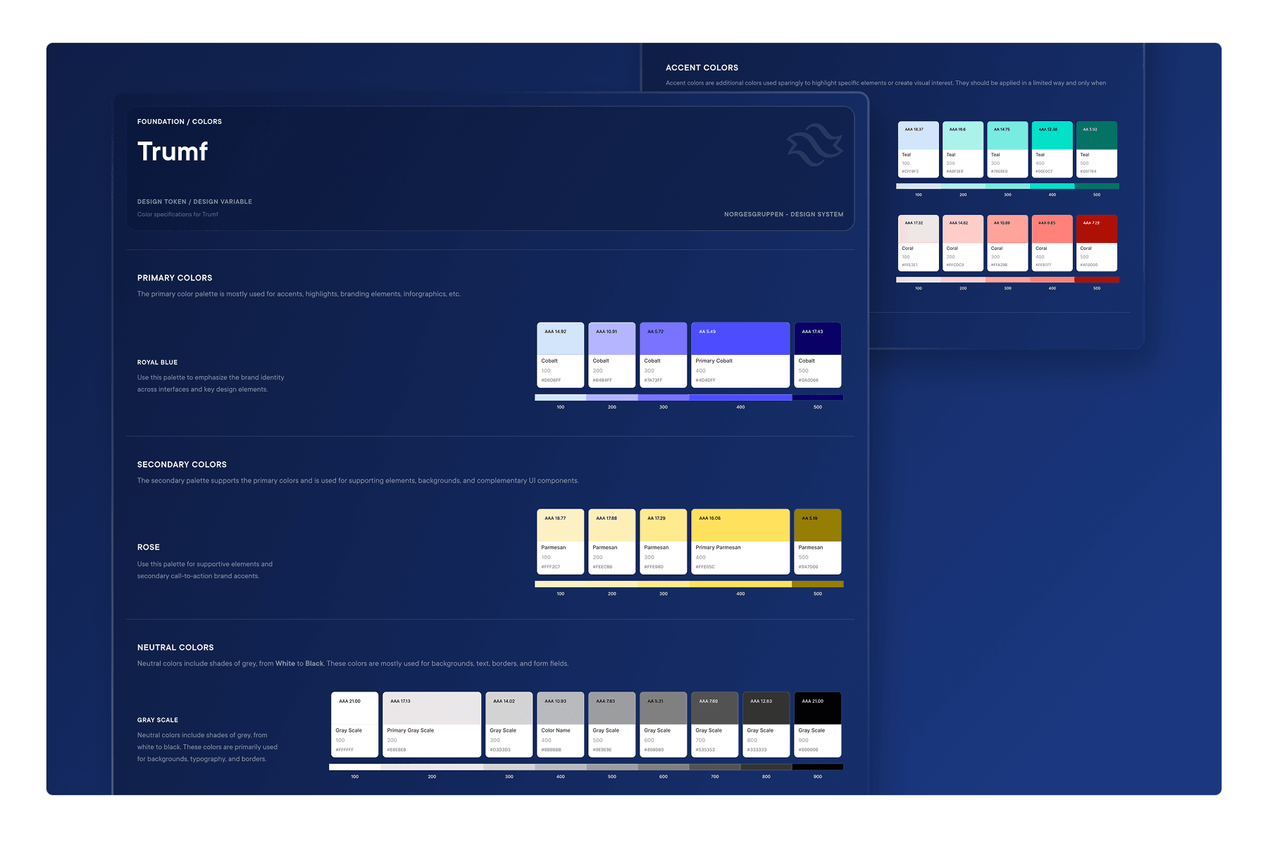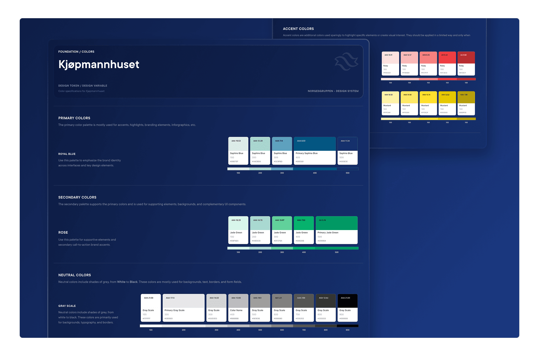 The assets needed to be organised and structured in a scalable way, so early on, we decided to move forward with one shared neutral palette across all brands, covering neutrals, warnings, alerts, confirmations, and link colors. For the brands, I restructured each color palette into a consistent scale, with primary, secondary, and accent colors clearly separated. Every brand had enough room to feel like itself, without the system losing consistency.
