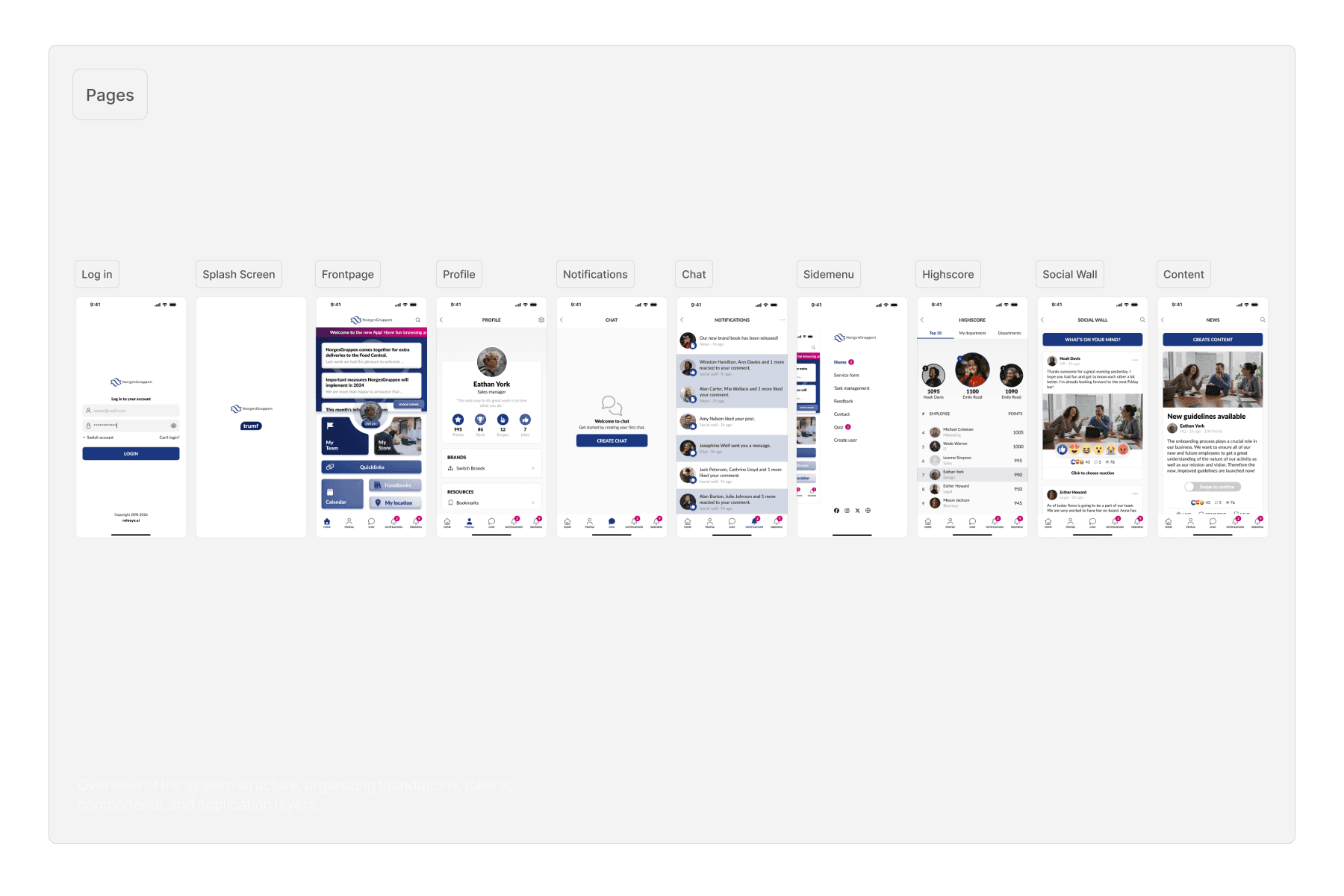 We spent the early stages working closely with the Product Manager and HQ, not on screens, but on structure. After long discussions and listening closely to the client, we landed on eight apps, some single-branded and some multi-branded. We defined the module system, news feed, social wall, profile, and more, and established clear rules on what needed to stay fixed and what each brand could own. That's what made the system scalable.